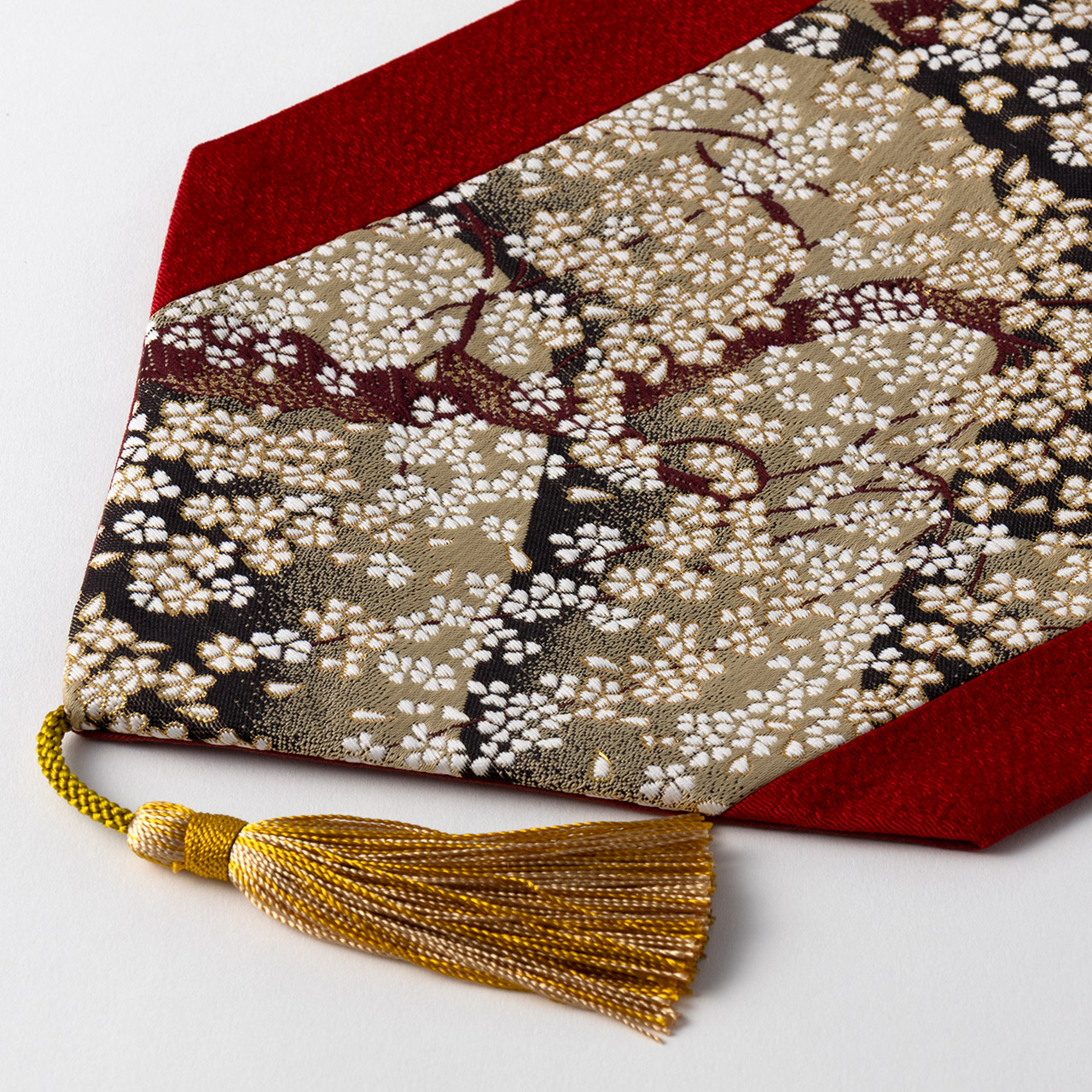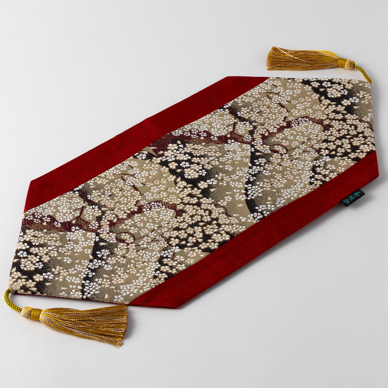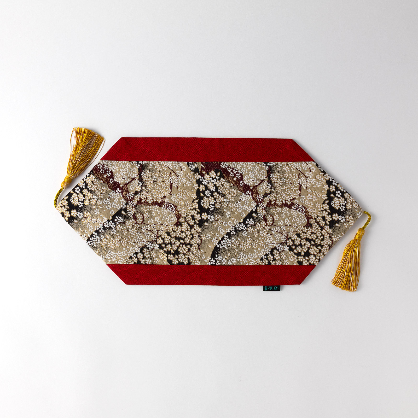 賢翆舎テーブルマット 朱地 金・白・花 房付き