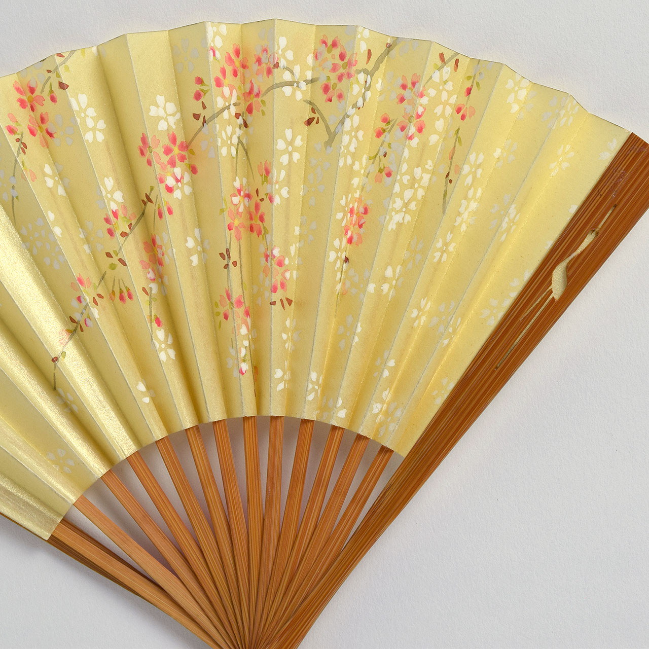 茶道扇 自然竹 黄/小花