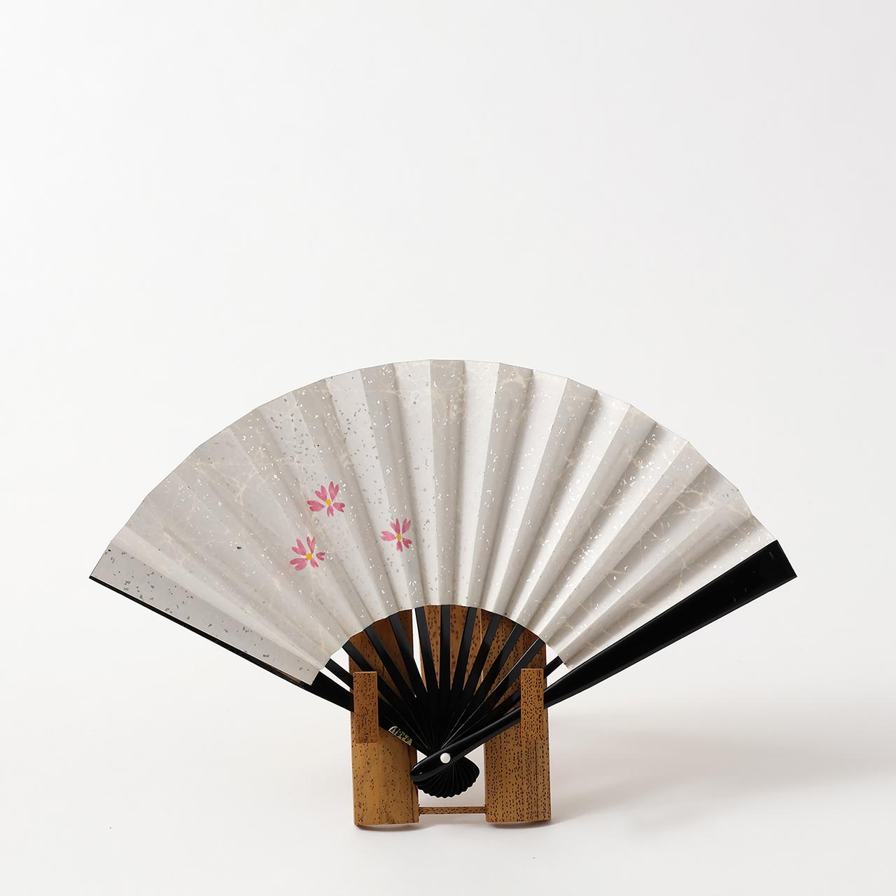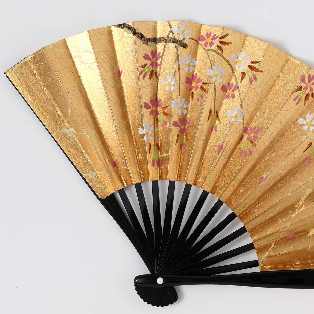 茶扇 金地(ピンク花)銀(白にピンクの花)