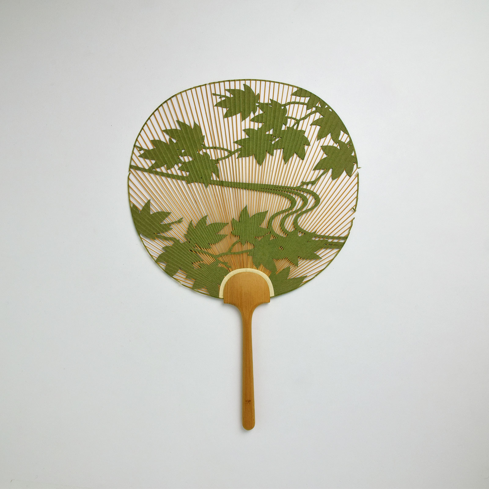 うちわ 透かし彫り緑 阿似波(破れのためOFF)