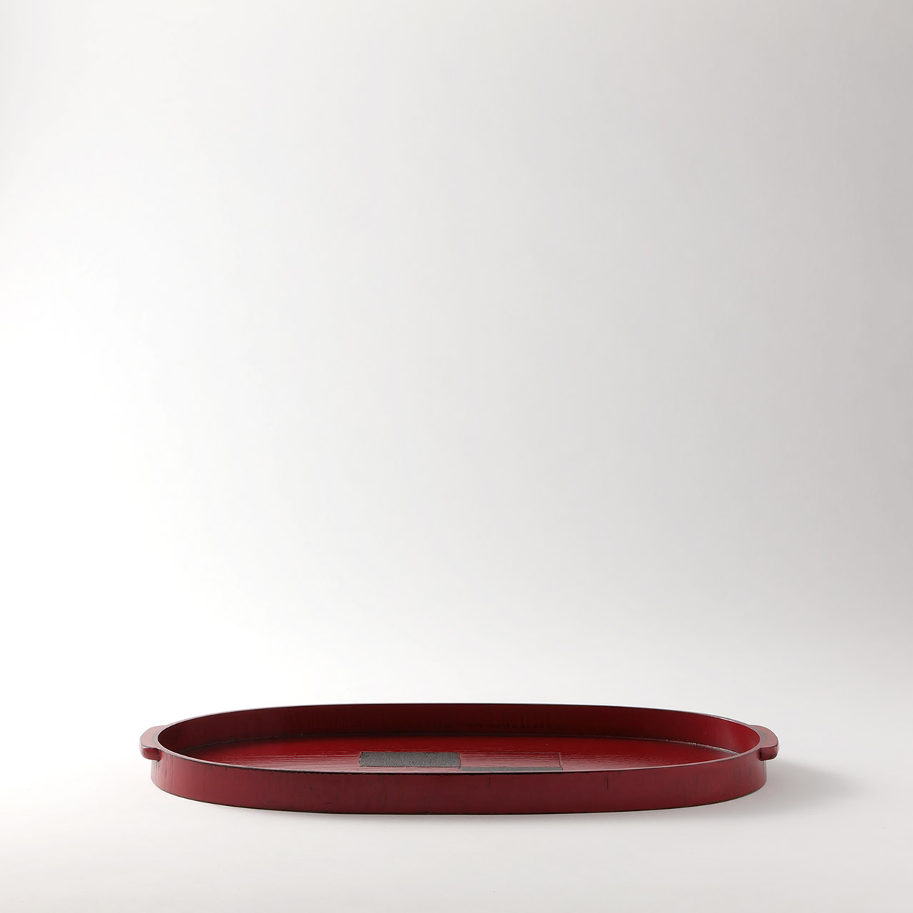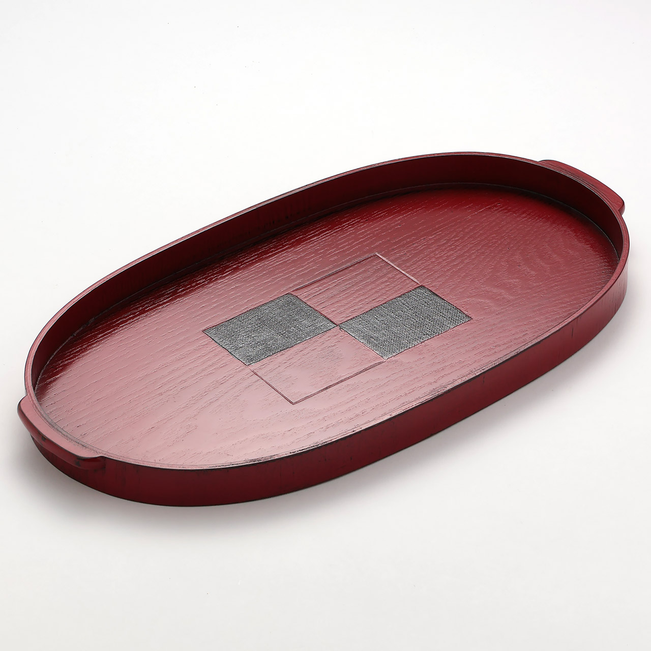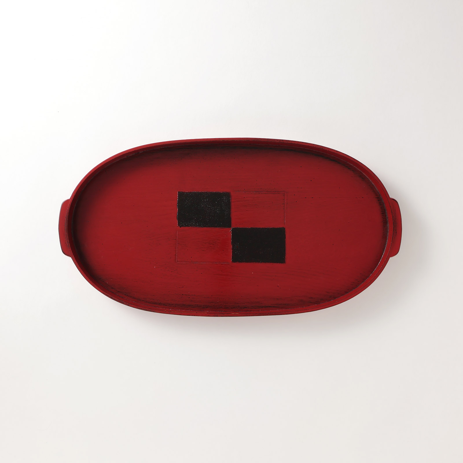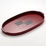 小判手付盆 市松根来(朱)