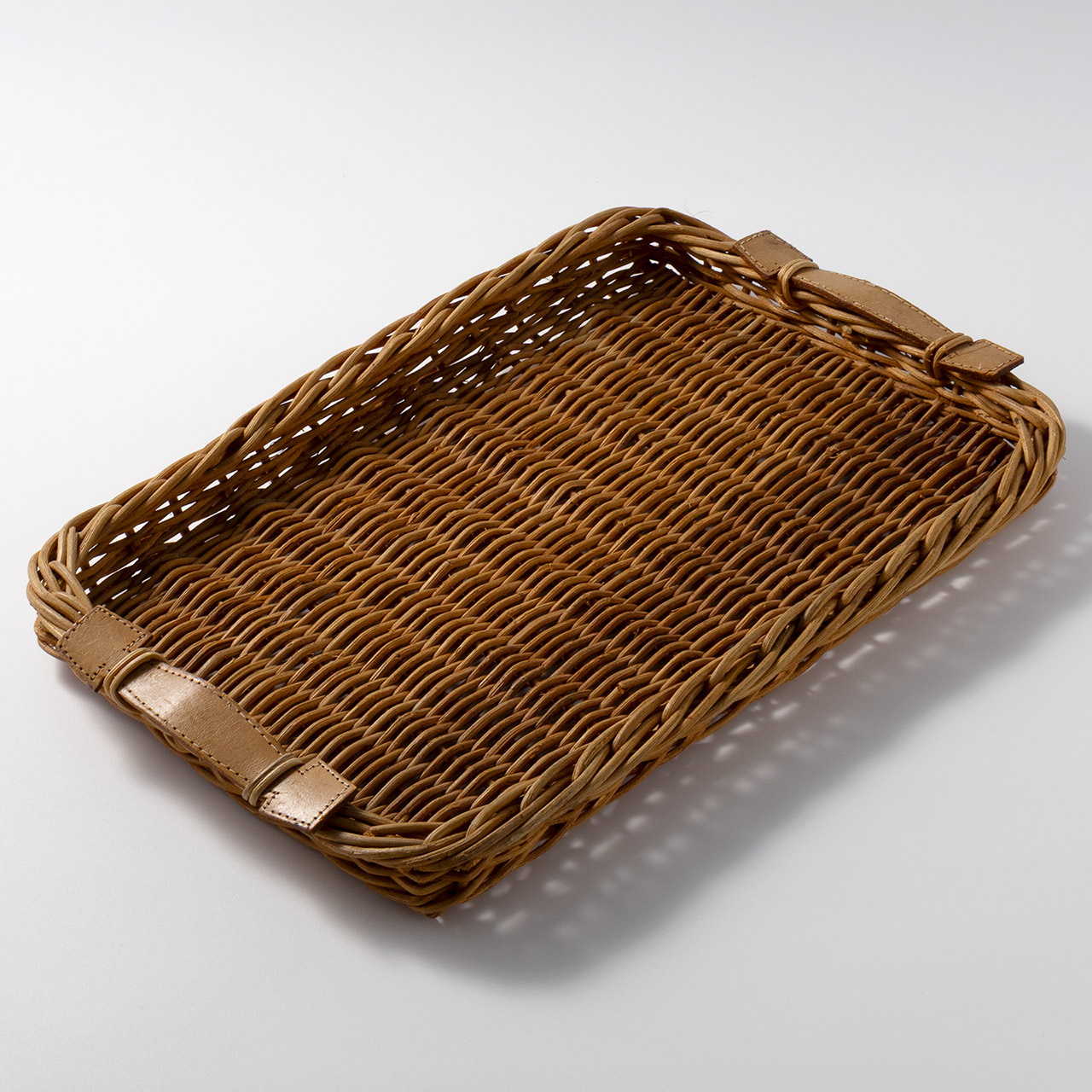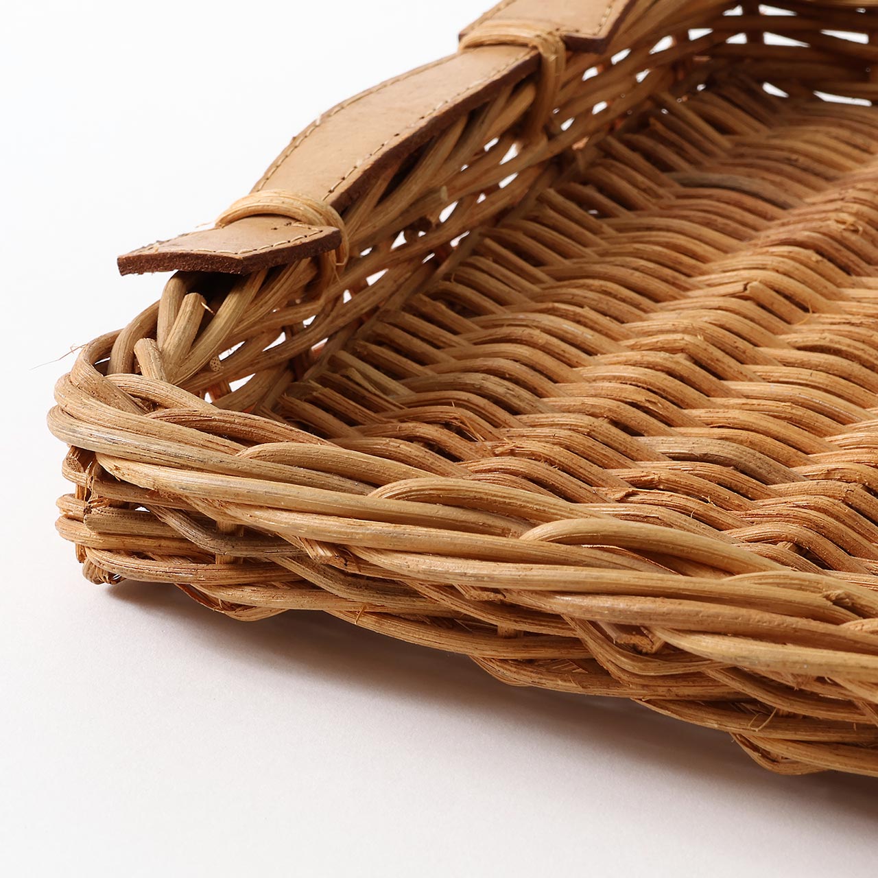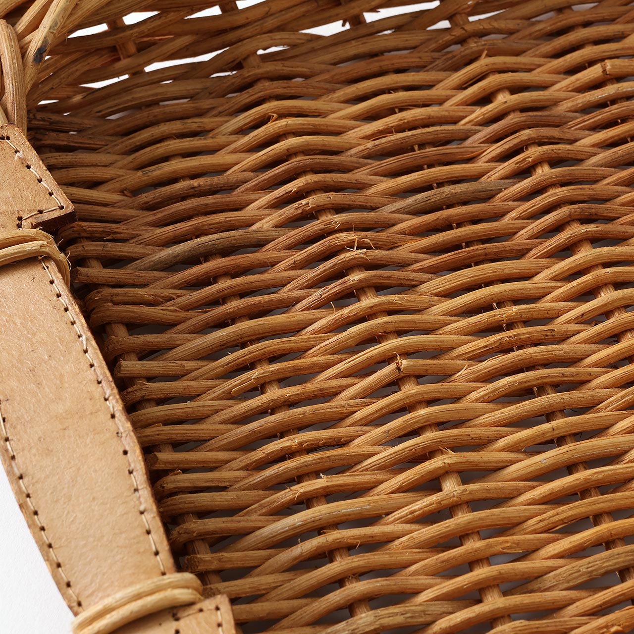 籐トレー 両手皮付き(小)