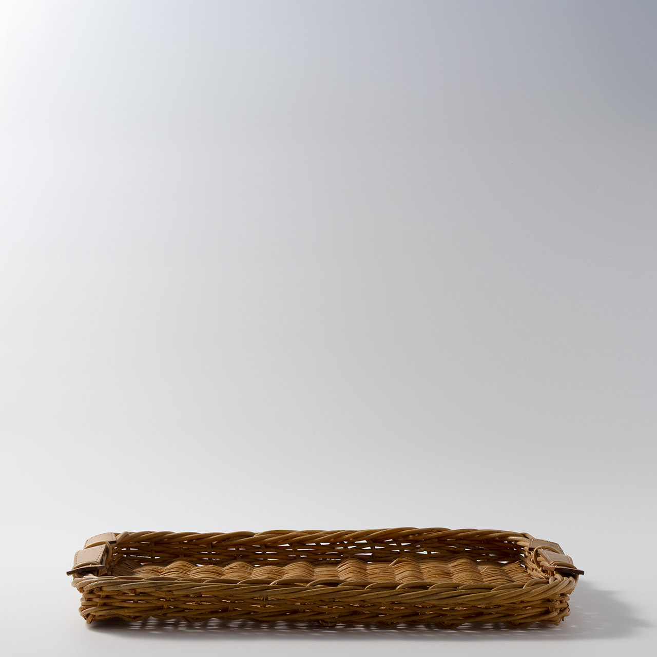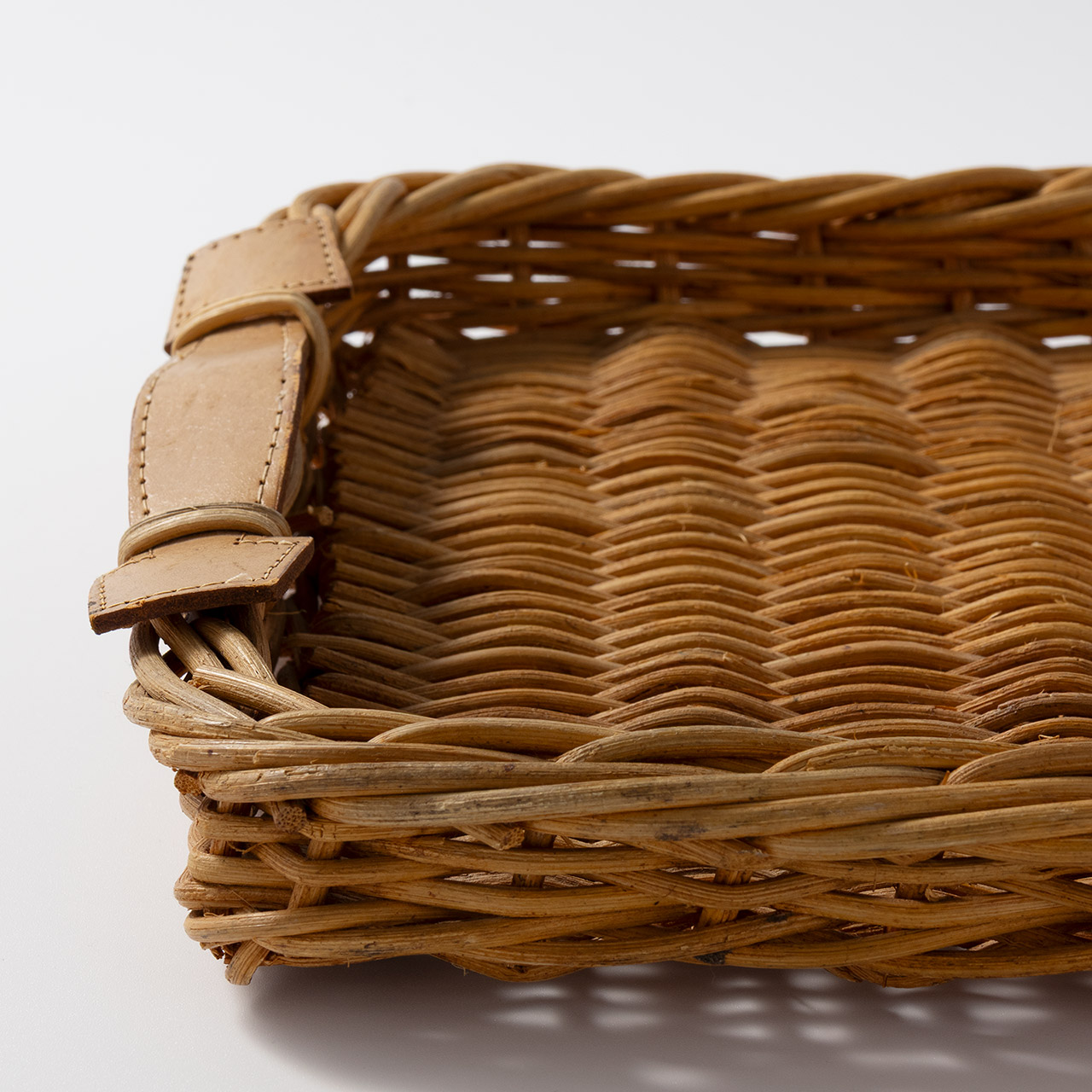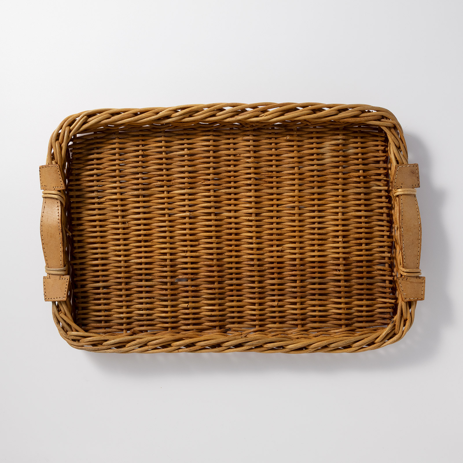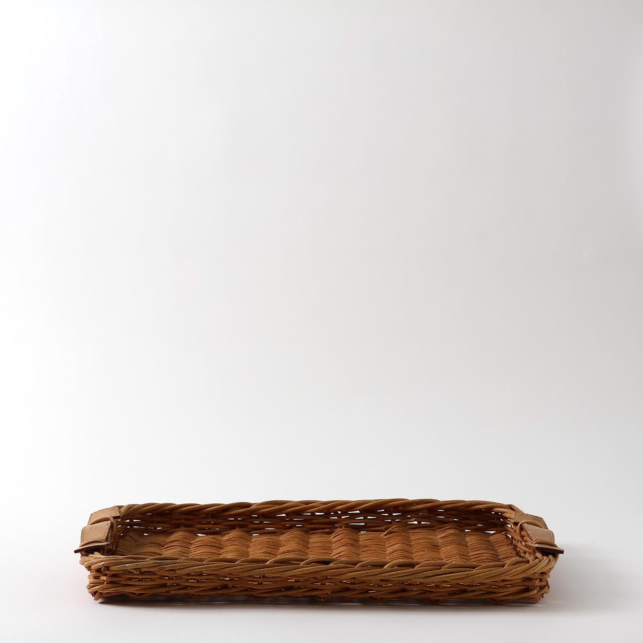 籐トレー 両手皮付き(小)